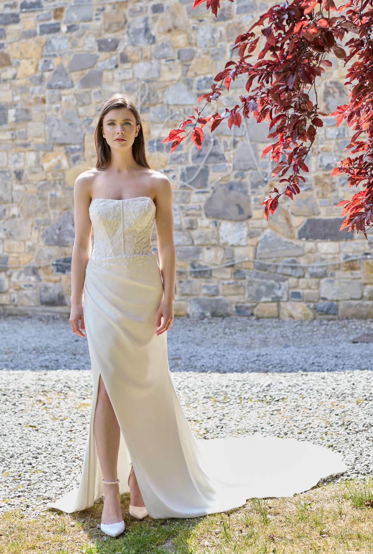 Stäbchenspitze mit Kreppoberteil und Krepprock.