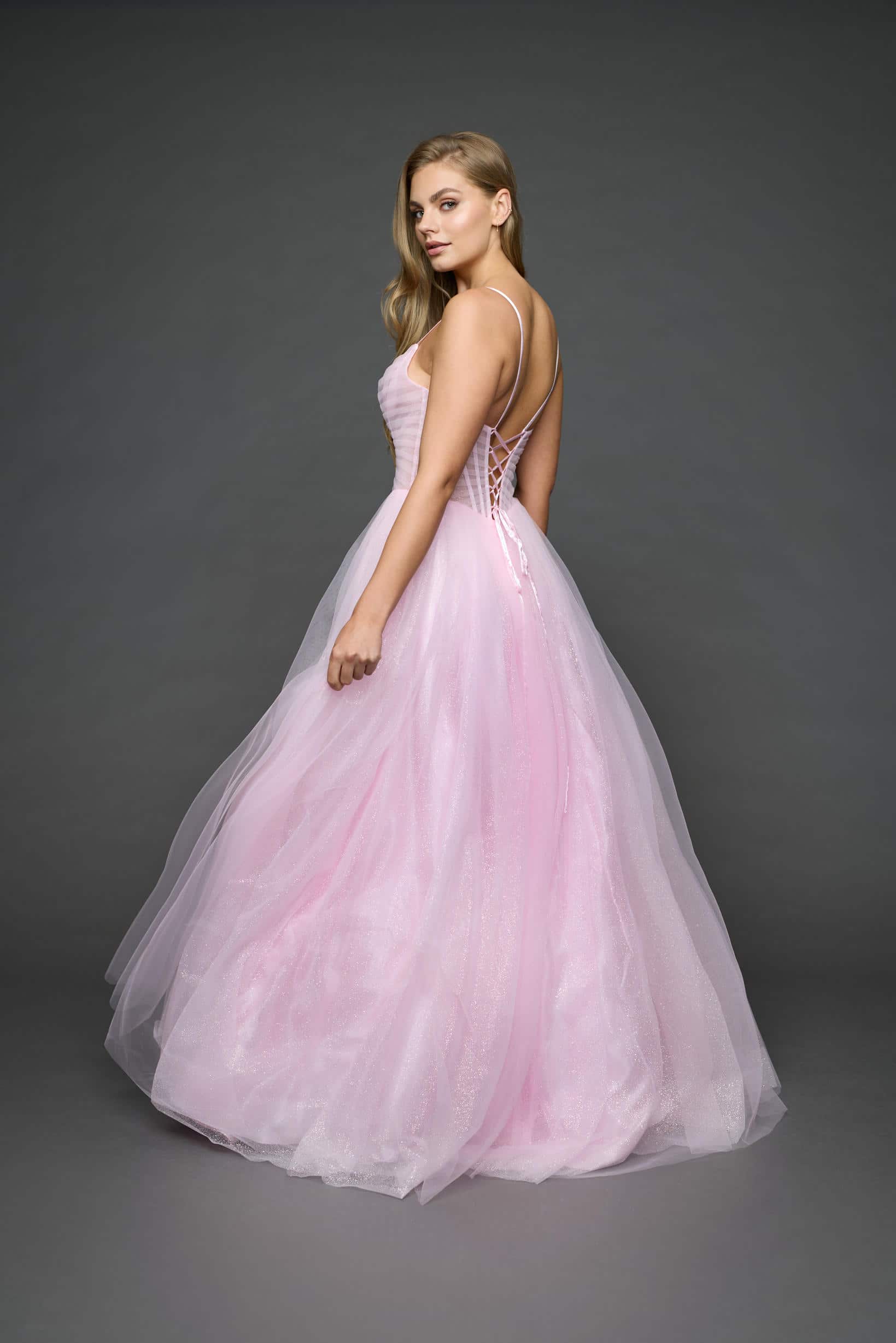 Boned corset bocice with full skirt and lace up back.