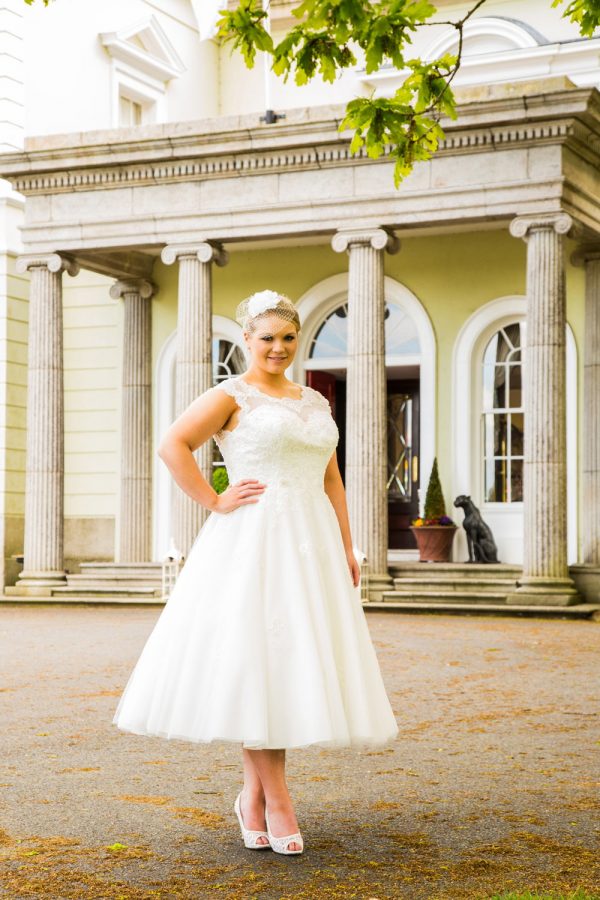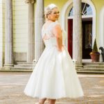 maten UK 18- UK 36 Tea lengte Kralen Kant / tule jurk Afgebeeld in Ivory Verkrijgbaar in White Tea Lengte