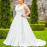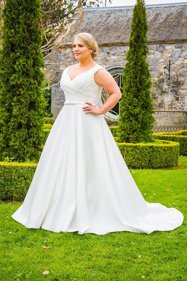 maten UK18 – UK36. Satin Bridal Dress Colours shown in ivory, ook verkrijgbaar in wit.