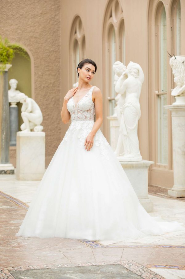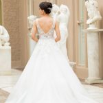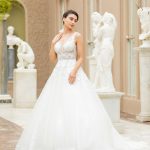 Met kralen bestikt kanten illusie lijfje met sprankelende tule rok.