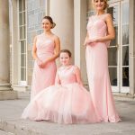 Flower Girls Jurk Satijn / Tulle / Pearl Sample Melon Met Satijn Kleur Card