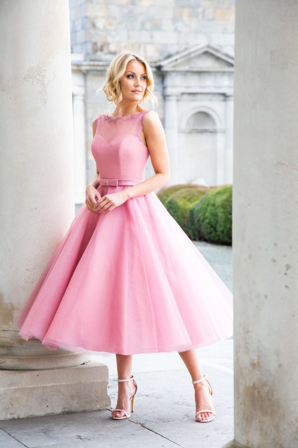 Dot Tulle / tule stof jurk in Duistere Roze See Dot Tulle kleuren
