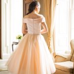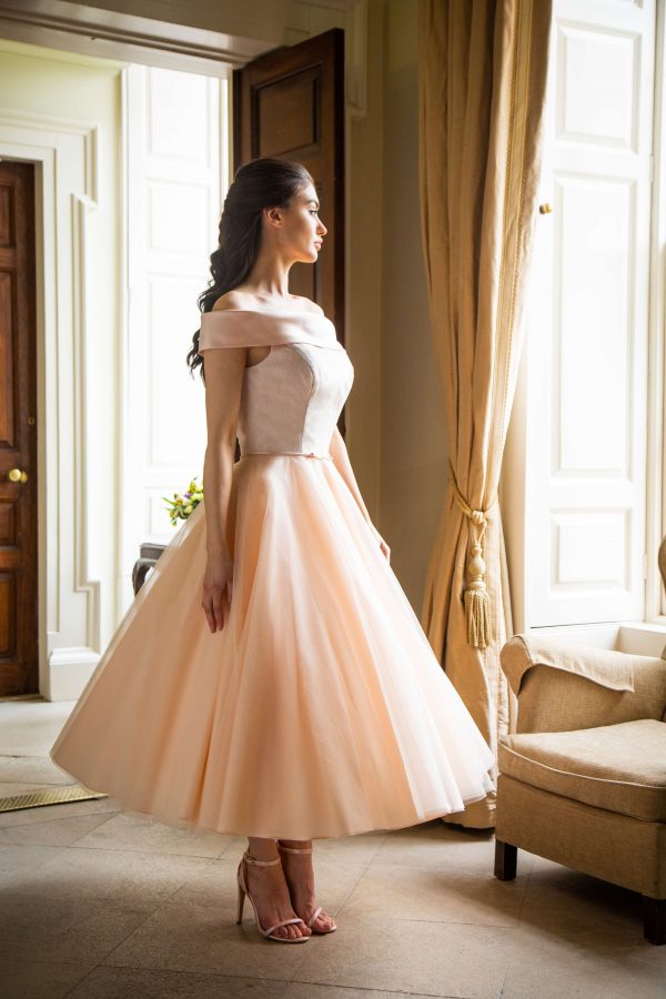 Rose patroon Printed Organza / tule jurk kleur Melon / Ivory / Melon Gebruik alleen lichte pastelkleuren