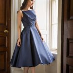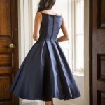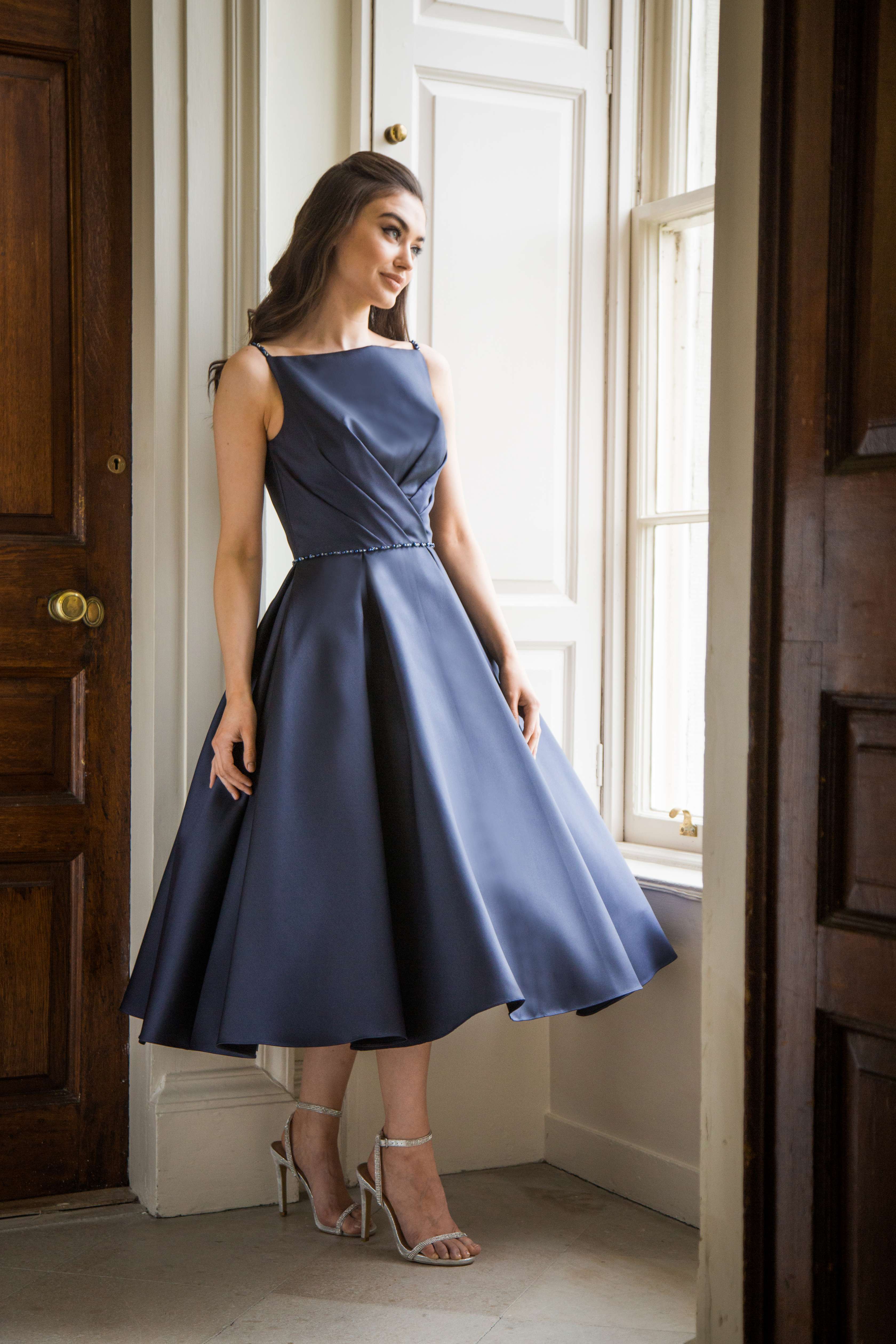 Mikado Fabric Dress kleur Navy Gebruik Mikado monsters van de kleur