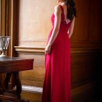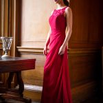 Kant / chiffon jurk Bordeaux Met kant kleur kaart