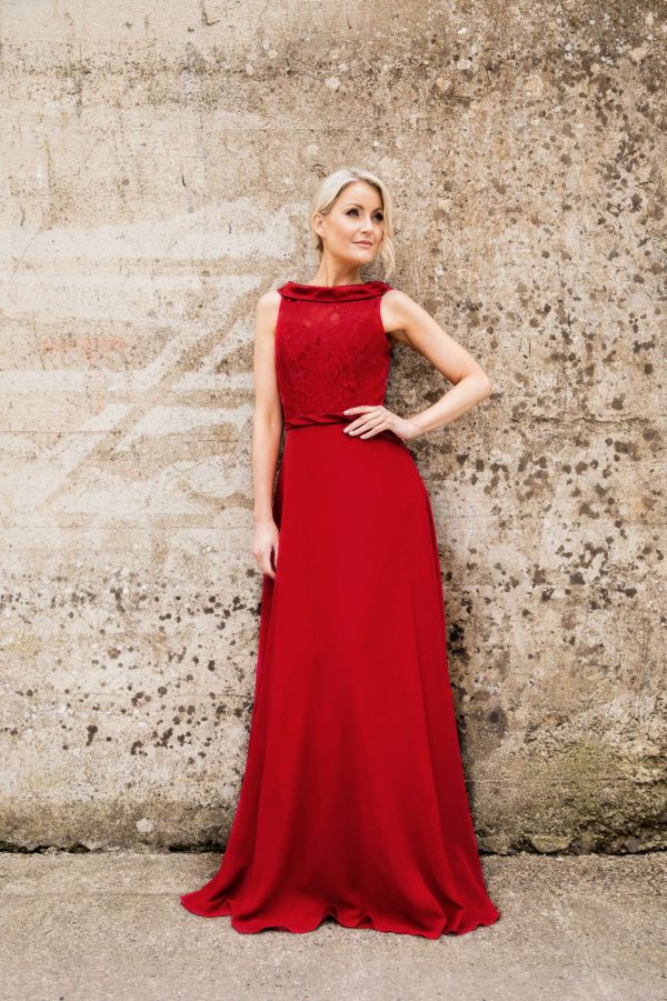Kant en chiffon jurk met kraag.