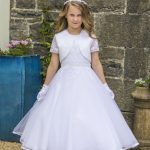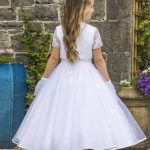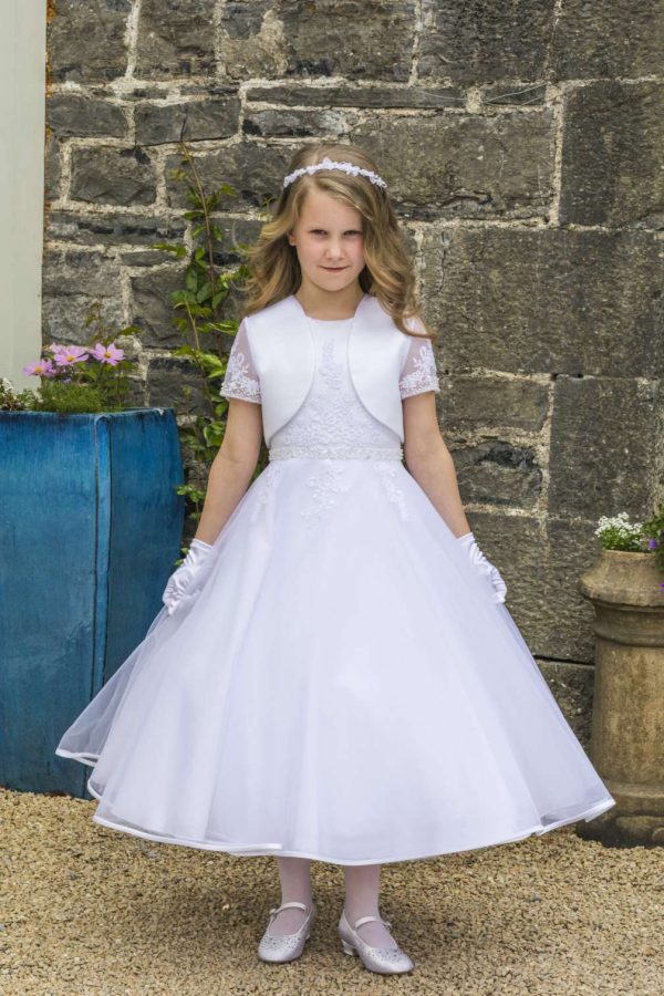 Satin and tulle dress with beaded lace.