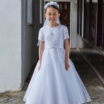 WITTE KOKO COMMUNIEJURK KANT/TULLE UIT DE KOKO COLLECTIE GETOOND IN WIT, OOK VERKRIJGBAAR IN IVOOR