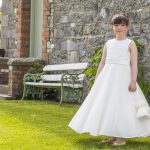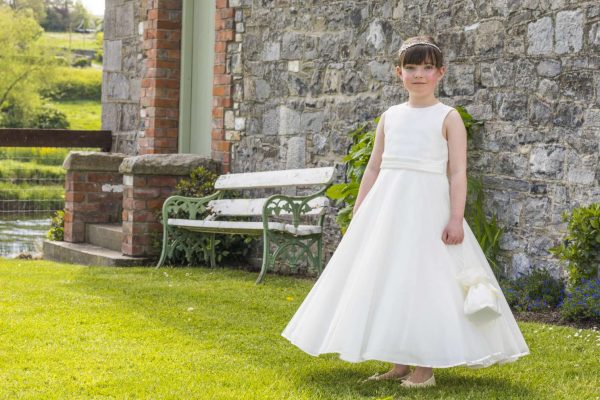Lace/mikado and tulle dress with bow.