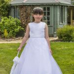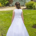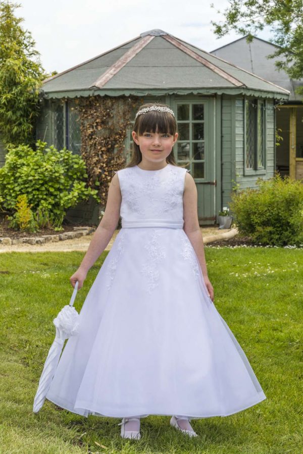 Sleeveless lace and tulle dress.
