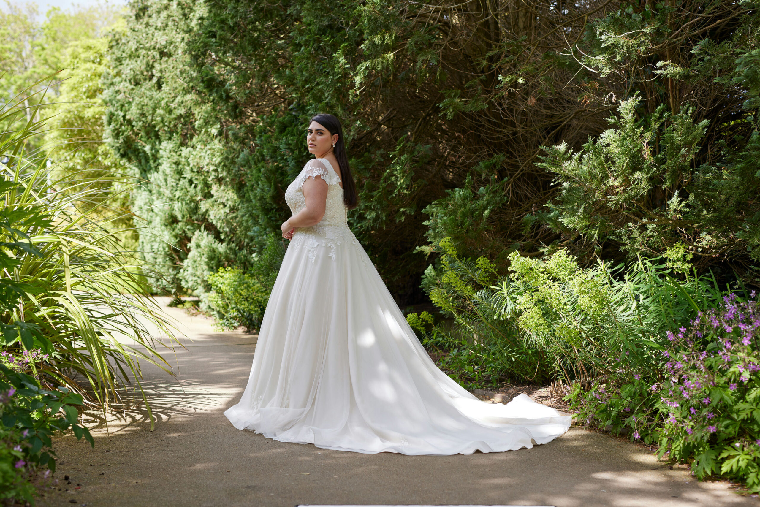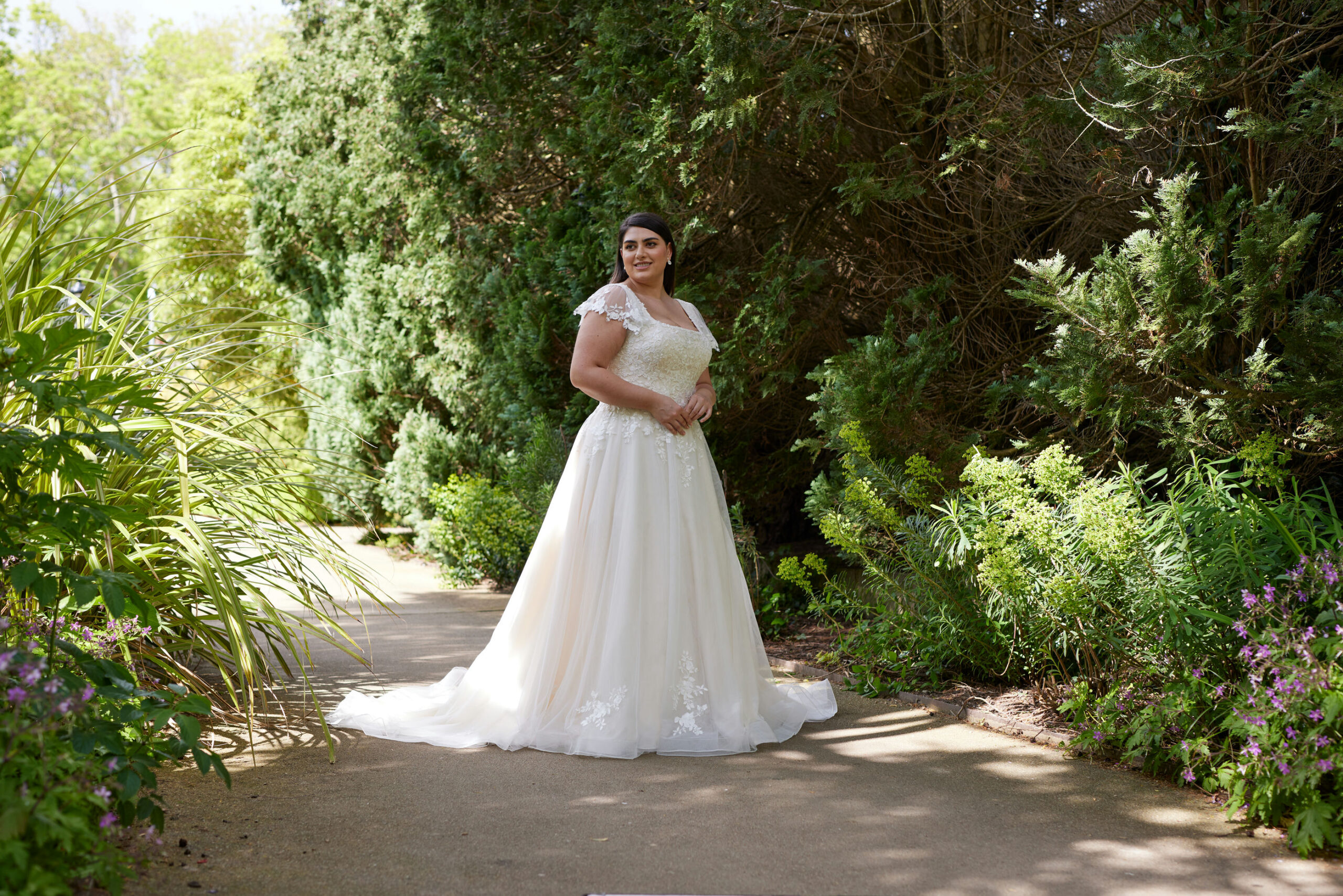 Lace tulle dress , fluted sleeve