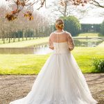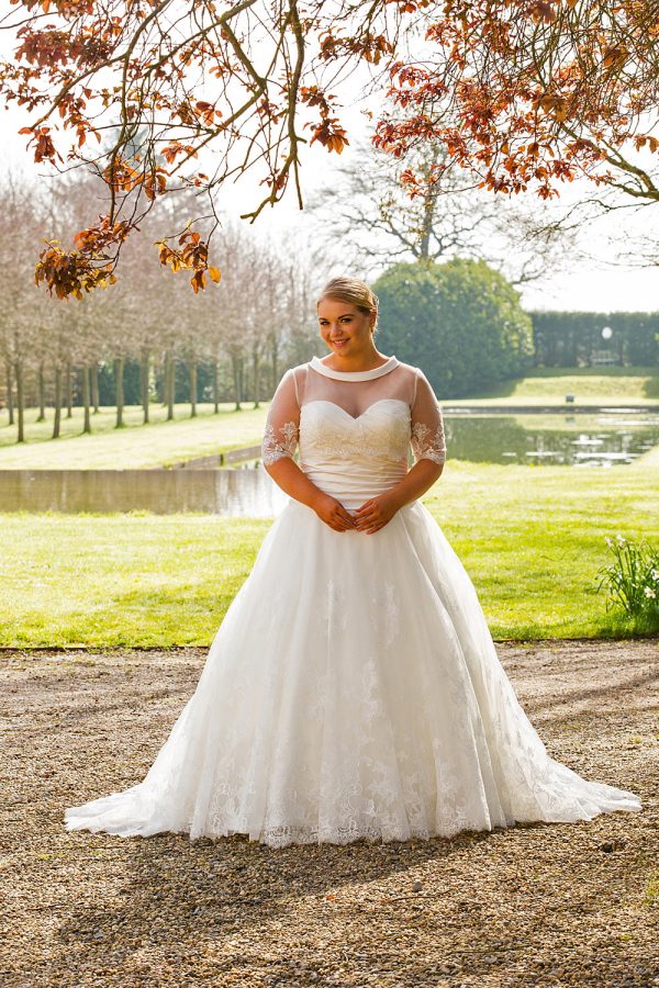 Size UK 18- UK 36Lace tulle jacket with satin roll collar. Features button and loop closure at back. Shown in ivory, also available in white.