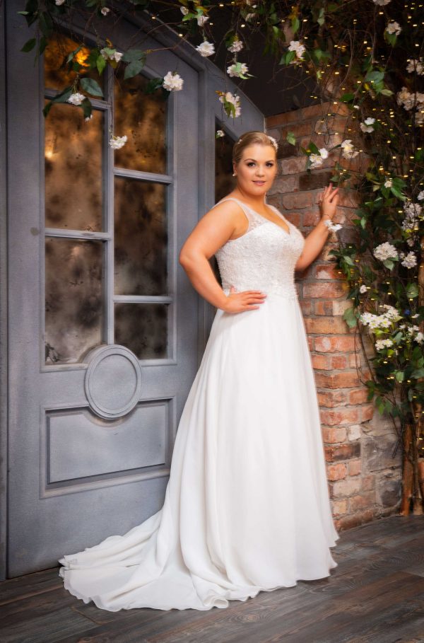 Sizes UK18 – UK36. Colours shown in ivory/silver, also available in white/silver
