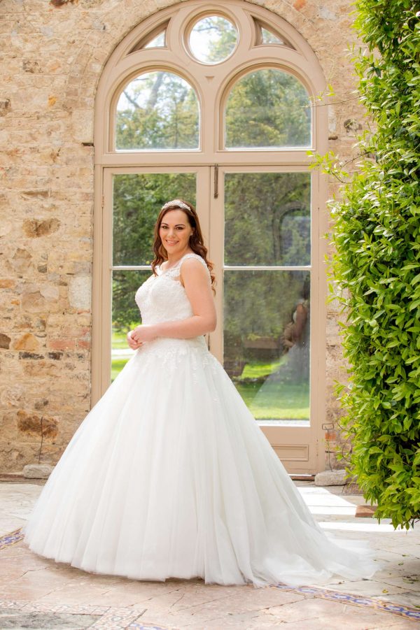 Lace and sparkle tulle dress with illusion neckline.