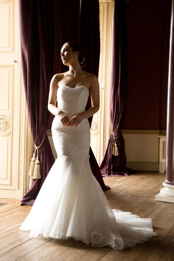 Size UK 6-UK 36 Beaded Tulle Fishtail Dress Sweetheart Neckline Corset Closure