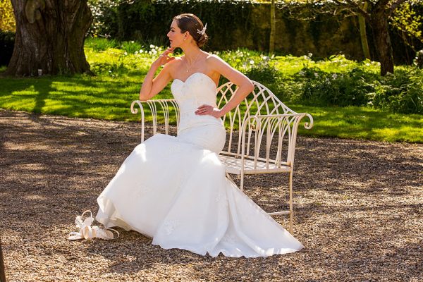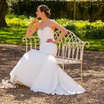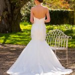 Beaded lace dress with sweetheart neckline and fish tail skirt. Shown in ivory. Also available in white.