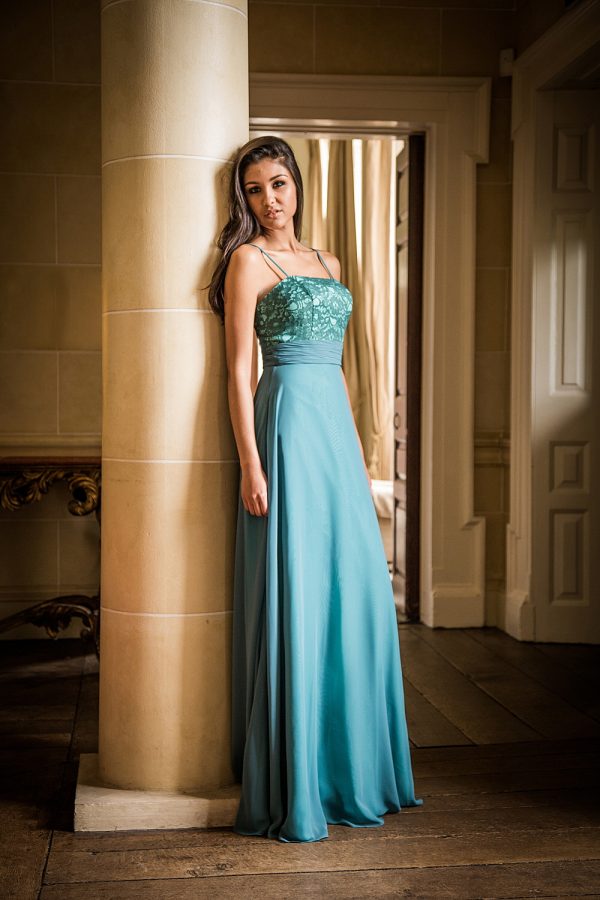 Fabric Chiffon/Lace Dress Pine/Artic Blue Use lace Colour Card