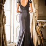 Fabric Crepe Dress Black/Silver with Beaded Sleeve and Train