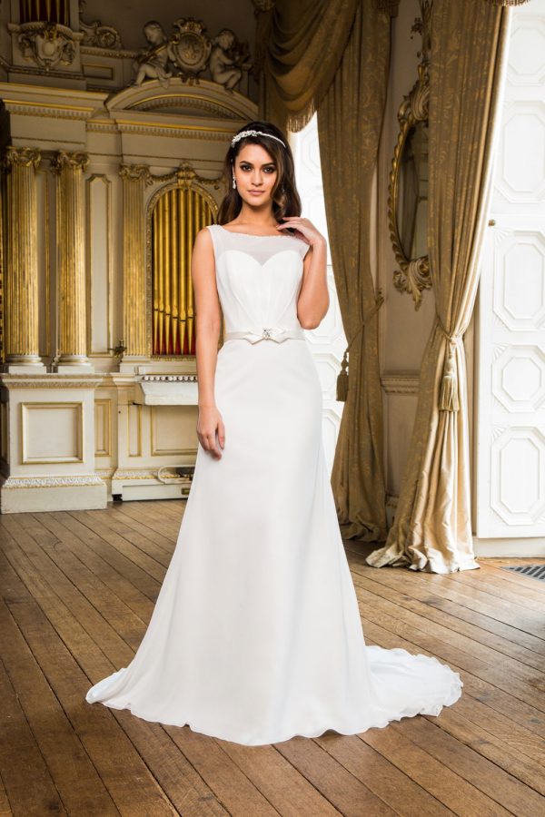 Size UK 6 -UK 36 Chiffon Dress with Sweetheart Bodice and Chiffon illusion Neckline Shown in Ivoet also available in White