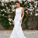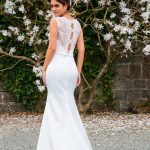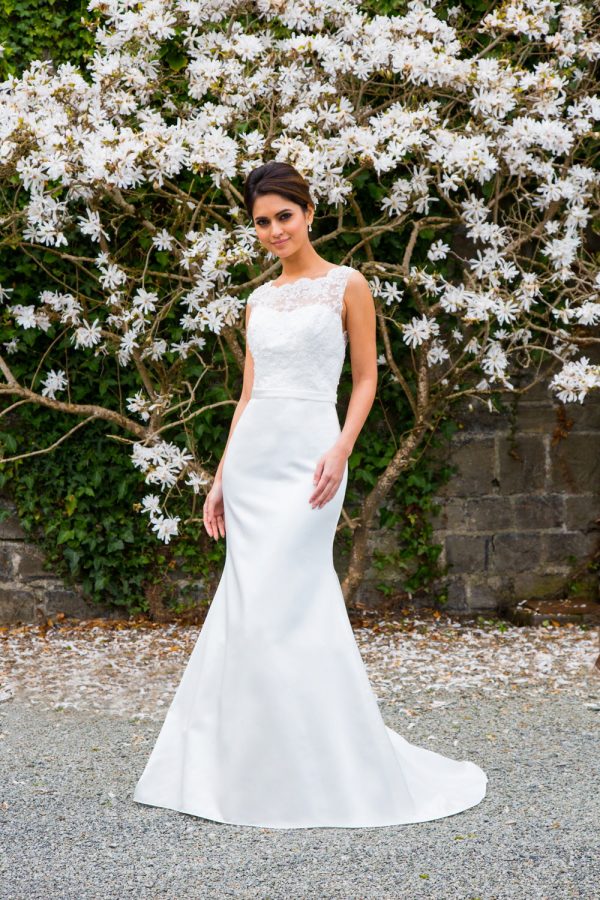 Size UK 6- UK 36 Lace and Satin dress with Satin waistband and bow at back Shown in Ivory also available in White