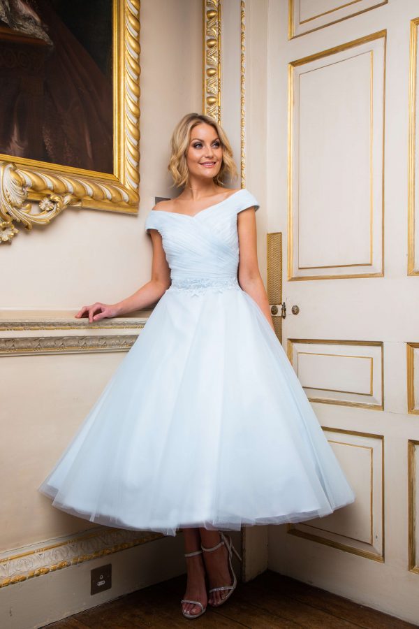 Fabric Swiss Tulle/Lace Dress shown in Baby Blue Swiss Tulle colour card