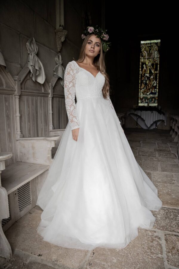 Lace and tulle dress with beaded bodice.